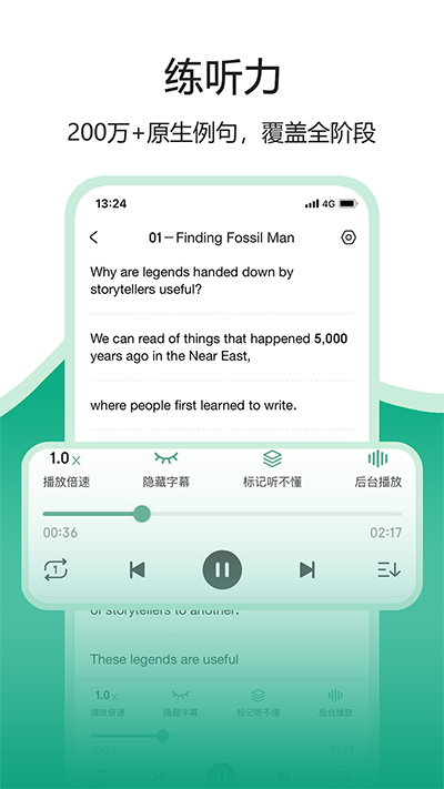 功能上是为莘莘学子量身定做,边听边看字幕、隐藏字幕,对于听不懂的任何句子可单独标记,以便定点突破提高